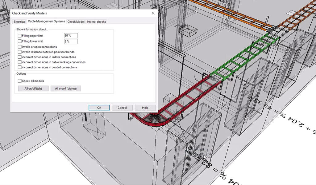 Proiectarea electrică se bazează pe obiecte inteligente, precum întrerupătoare și prize, care conțin informații stocate. Aceste date constituie punctul de plecare pentru calculele automate. Proiectarea și calculul sunt integrate – modificarea modelului actualizează automat calculele și invers. Acest lucru economisește timp și previne erorile.